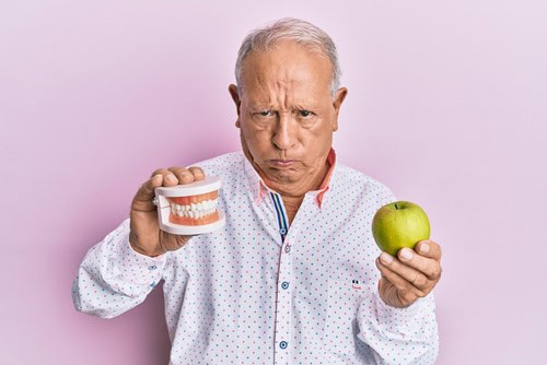 Las dentaduras postizas flojas también pueden dificultar la alimentación. Ya puede ser difícil comer con dentaduras tradicionales, pero si no se ajustan a su boca, pueden reducir significativamente la cantidad de fuerza de mordida que tiene.